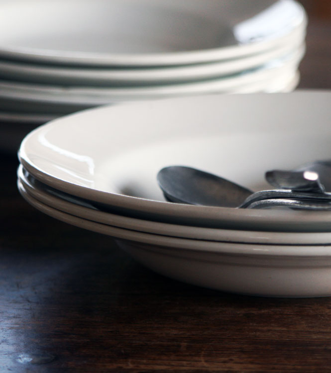 少し深さがあり、リムのあるスープ皿。 スープだけでなく、カレーやパスタ、少しお洒落したいテーブルでも、いつもの食卓にも。本当に使えるお皿なんです。 汚れなども無くきれいな状態です。現行の器とはやはり違う少しもってりした白。